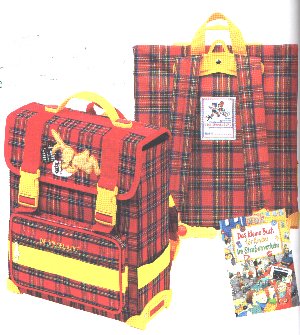 Große Schultasche mit Felix (ca 38 x 42 x 17 cm) Aus robustem, wasserabweisendem Karogewebe, geräumige, klassische Schultasche mit einer Innenunterteilung, zwei Vordertaschen für Stifte und Pausenbrot, weichen Riemen und gepolstertem Rückenteil. Bestell.-Nr. S98002 |